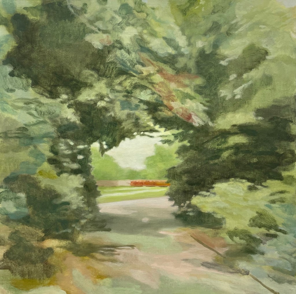 My paintings are of urban nature alongside roads as seen through bus or car windows as well as walks through public parks and local reserves. I’m inspired by the pattern of light and shadow created by the sun hitting the structures of trees, roads and paths along with the passage of movement through a landscape. Some scenes are captured as dynamic gestures and some are more contemplative.
