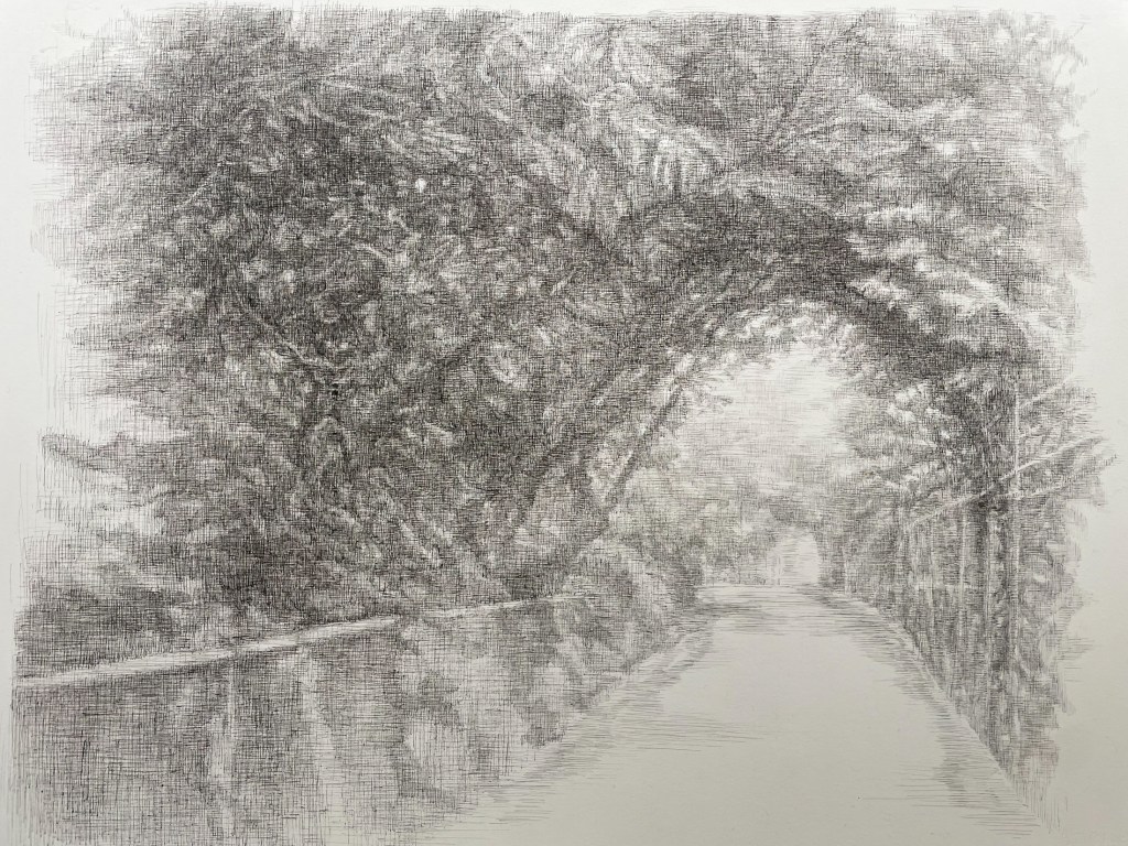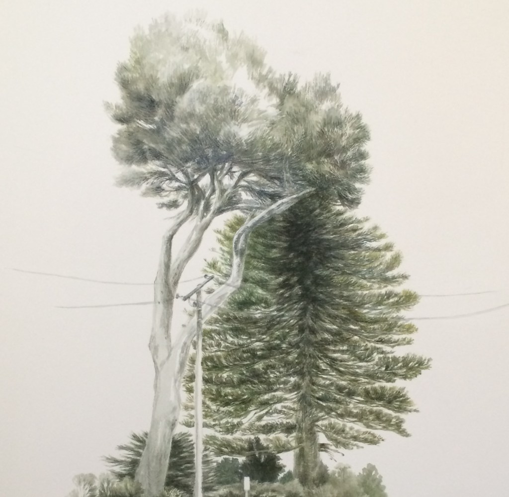 Brunswick Station Pathway, pen and ink on watercolour paper, 2024Post Bloom, graphite on watercolour paper, 2022Between The A and The B – Back Fence (detail). 2015. Watercolour on paper. 560mmx780mm. Shortlisted for the 2016 Rick Amor Drawing Prize, Art Gallery of Ballarat.