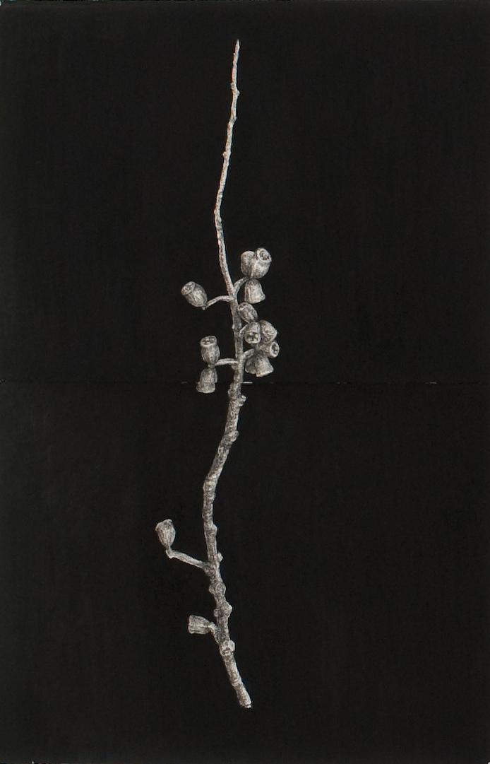 Ex Situ – Eucalyptus fastigata gumnut. 2010. Compressed charcoal on paper. 760×1200. Understorey exhibition, Geelong Gallery.